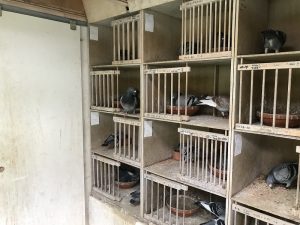 • De jongen zitten in het jonge duivenhok met hun moeders