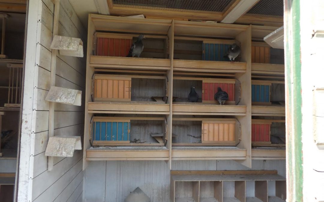 • De jongen zitten in het jonge duivenhok met hun moeders