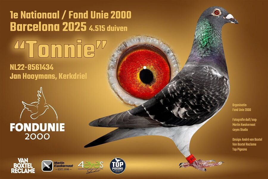 Sinds dit jaar is de Fondunie 2000 ‘landelijk’ gegaan. Iedere liefhebber die in Nederland bij de NPO een lidnummer heeft met een coördinaat mag aan de concoursen van de Fondunie 2000 meedoen. André van Boxtel van Toppigeons en Van Boxtel Reclame ondersteunt dit nieuwe initiatief. Hij onderstreept deze steun door de winnaars te bezoeken met Martin Kwakernaat (4Eyes Studio) om de winnaar te feliciteren en een mooie fotoreportage te maken. Verder maakt hij een mooie tekst die dan zo spoedig mogelijk wordt gepubliceerd op Social Media. Over de overwinning op Barcelona door Jan Hooymans schreef hij onder meer: